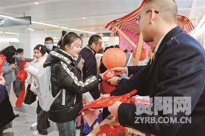 1月24日上午,轨道交通资阳线资阳北站,洋溢着浓浓的新春氛围。创意剪纸、写春联、送福袋、赠玩偶……一场热闹非凡的“温暖365·温暖回家路·春节志愿服务主题活动”在此欢乐开启,成都成资轨道交通有限公司联合雁江区共同为春运旅客精心准备了这场温暖的回家之旅。