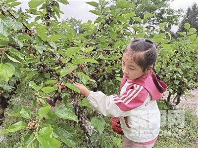 “这里的桑葚又大又甜,孩子玩得特别开心!”游客周女士兴奋地说,“12岁以下小朋友免门票,既能亲近自然,又能体验收获的快乐,还很划算!”