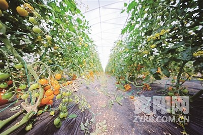 一排排绿色的藤蔓上,一串串成熟或半成熟的小番茄,在青翠欲滴的枝叶映衬下格外诱人……