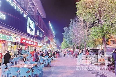 然而,这条街在多年前还少有人气。为活跃经济、刺激消费,市城管行政执法局等相关部门研究选点,在此设立翡翠丽都夜市外摆摊区,划定民生经营黄线,供“餐饮宵夜”业态经营。在规定时段内,临街的店铺可在经营黄线区域内设置外摆餐桌。